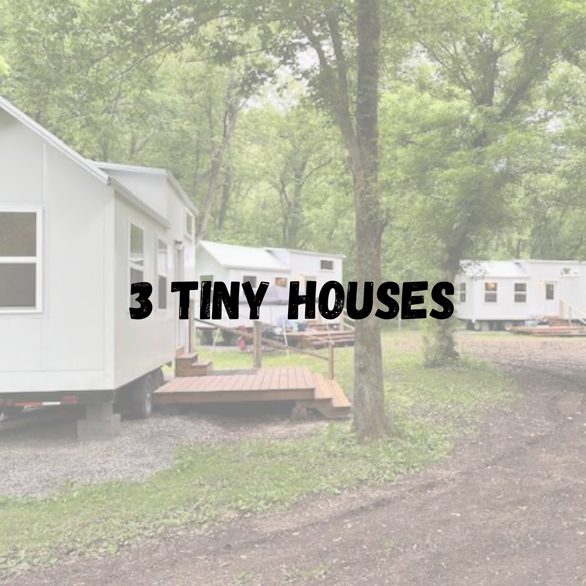 A Tiny House Neighborhood with 3 tiny houses on wheels accommodating 1-2 campers each